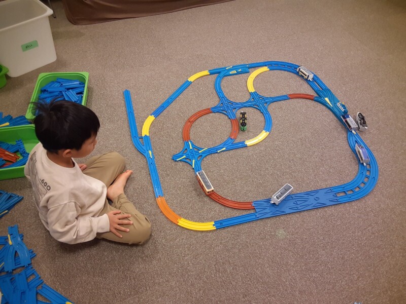 プラレール運転手ごっこで盛り上がり、