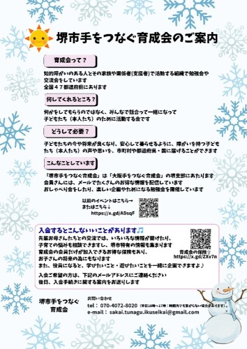 堺市手をつなぐ育成会より冬の学習会のご案内がぴーすに届きましたのでご案内致します。
