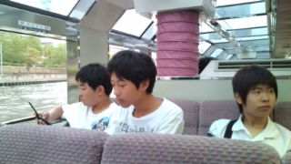 N君・・アクアライナーは雨が強かったので、あまり外が見えなかった。