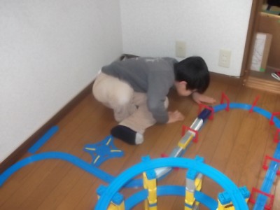 レールの組立ての師匠 Kくんが組み立てた作品にみんなが夢中に!!