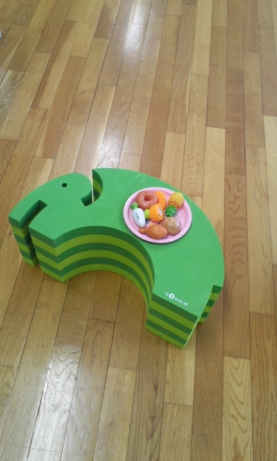 ちゃんと、テーブル代わりのソフトぶろっくに乗せて配膳!