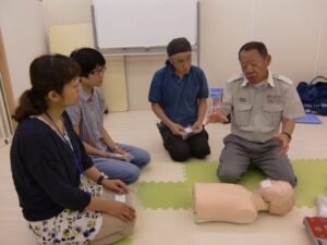 児童デイのスタッフが夏休みに向けて、救命救急の講習を受けました。
