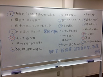 ホワイトボードの青丸は、うちの息子がやっていた行動です。