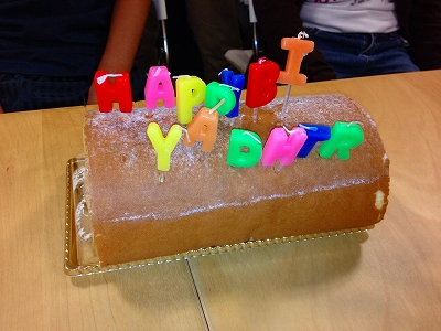 ケーキに「HAPPYBIRTHDAY」のろうそくを立て