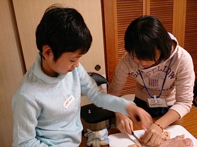 ボラさんと遊んでいる子、テーブルで折り紙をしている子。