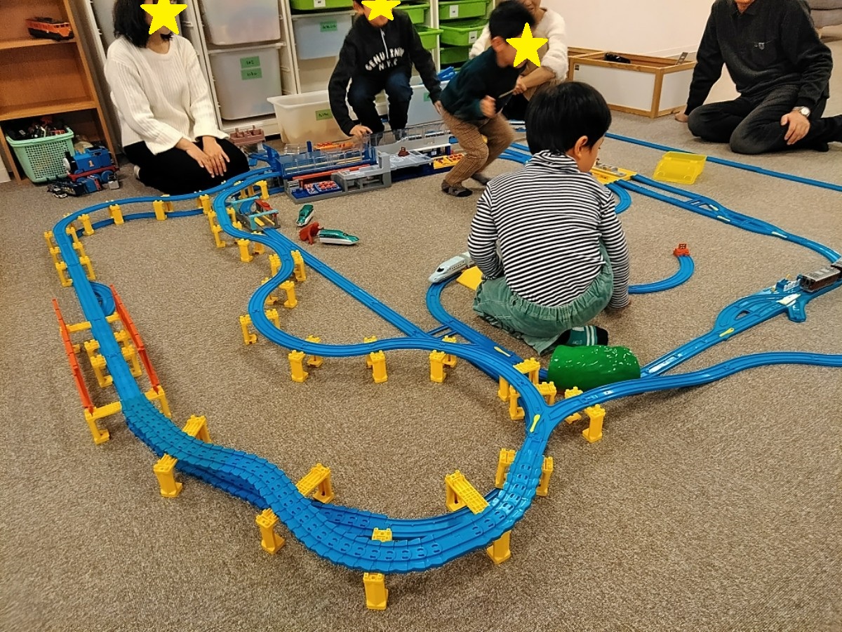 全員が協力して、プラレールの大作を組み立ててくれました!!
